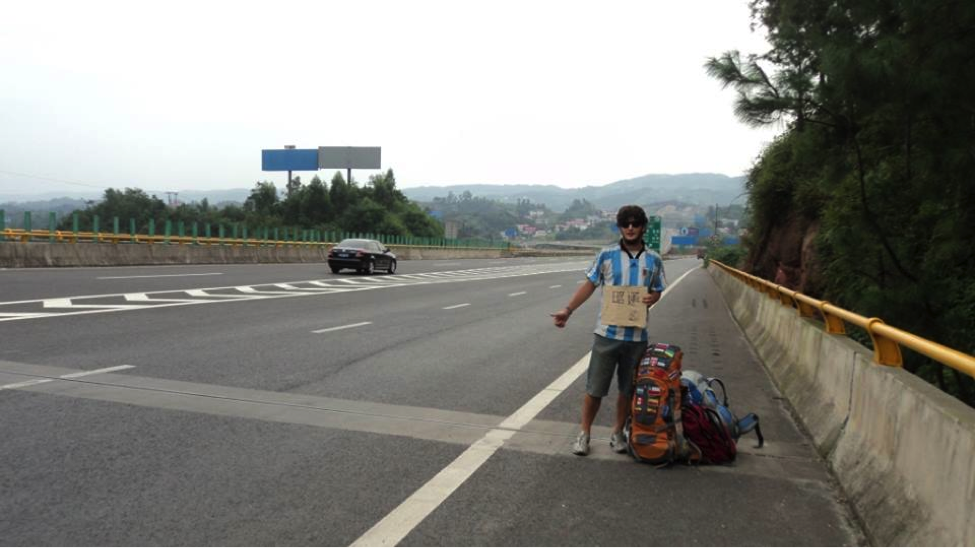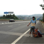 – Siempre hacia un cartel con la ciudad mas cercana desde el lugar donde salía. Por ejemplo, si salía de Beijing a Xian, que son 800 Km., hacia un cartel desde la ruta, a un pueblo a 150 Km. de Beijing. ¿Porque? Lo primordial cuando salís es salir de a ciudad, una vez que salís, todo es mas fácil, ya estas en el juego, tu cabeza piensa de otra manera. Fundamental alejarte mas de 100 Km. de la autopista, llegar a la Ruta.