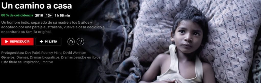 Trama: Un hombre indio, separado de su madre a los 5 años y adoptado por una pareja australiana, vuelve acasa decidido a encontrar a su familia original. VER PELÍCULA