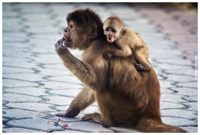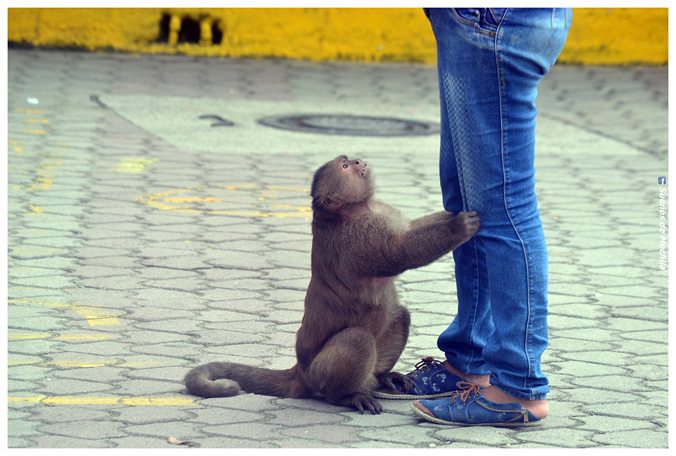 - Un mono iba negocio por negocio junto a su criatura, onda mochilero que se dedica a reciclar, y con total ternura, respeto, levantaba su manito esperando que sea completada con algún alimentos para compartir con su cría. A este en particular se lo veía triste y enfermo. “Tiene sarna”, me decía un comerciante
