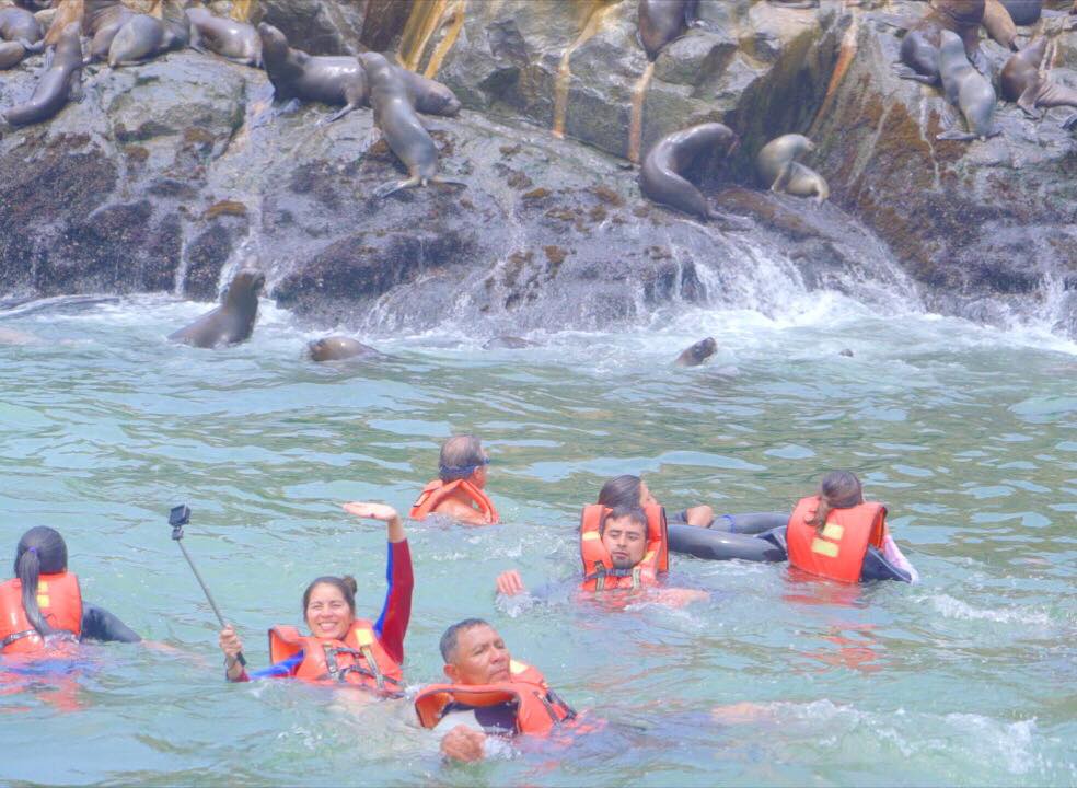 Una actividad poco conocida por los turistas pero real. Para disfrutar de esta increíble experiencia, puedes dirigirte al distrito del Callao y tomar un tour con la empresa Mar Adentro Excursiones que te llevará a visitar las Islas Palomino, Cabinzas y Frontón. Durante el trayecto observarás la flora y fauna marina, algunas deformaciones rocosas y posteriormente, el esperado nado con la colonia de lobos marinos. Esta actividad es completamente segura pues los lobos no están en zona de reproducción y resultan ser muy amigables, además viajarás con un guía que te acompañará durante todo el trayecto. La agencia te facilita un chaleco salvavidas, un traje wetsuit y un snack. La duración del tour es de 2 horas y media y el precio $45 USD por persona que bien lo merecen.